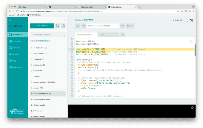 This feature has been designed specifically for the Arduino Create Editor. If you have yet to try it, follow this tutorial to get started — all you need is an Arduino ID.