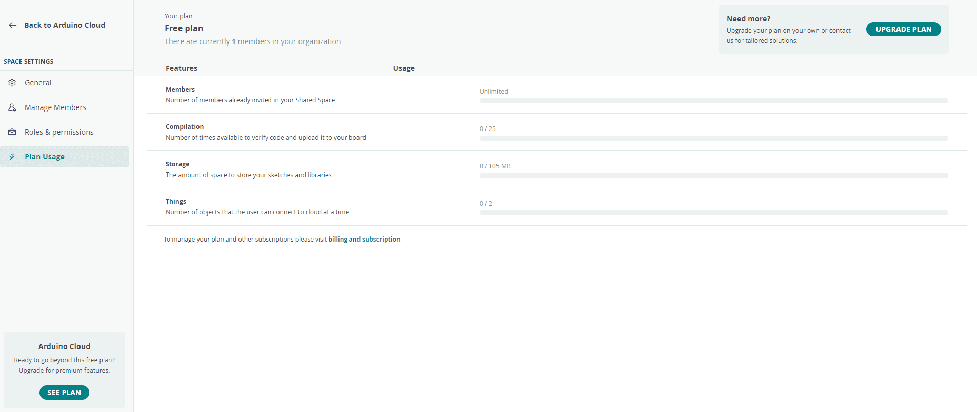 By default, any new user who created an Arduino account has access to Arduino Cloud with a Free Plan.