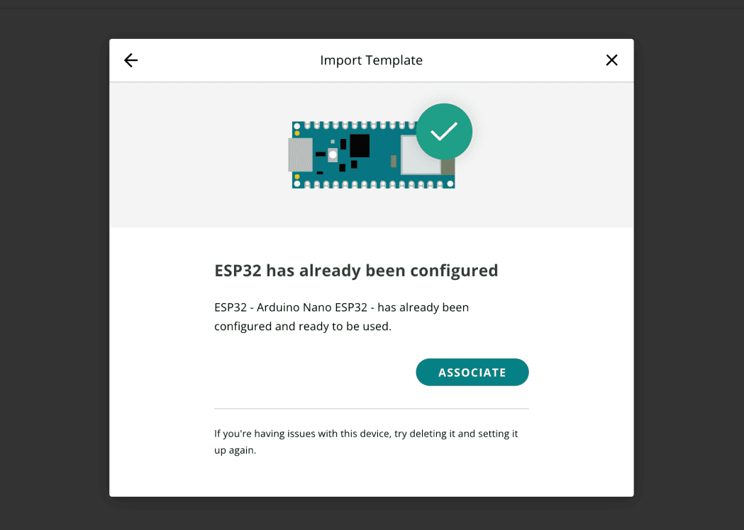 To use a device in Arduino Cloud, you need to create a Thing, or associate it to an existing Thing. A Thing is the digital twin of your device, like a reference to the actual hardware used to implement them. Each Thing is represented by a collection of properties, the configuration of some variables and other settings, as well as the history of the data collected for those variables.