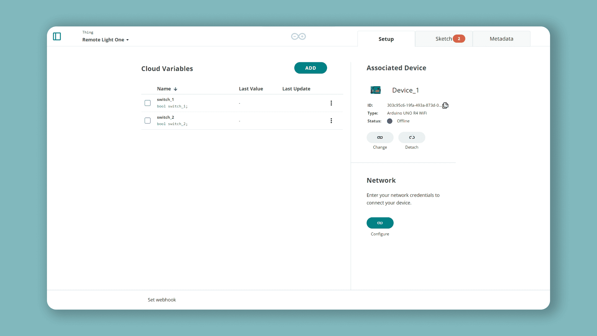 Now, we also need to complete the sketch for our first Thing. First, let's head over to the "Sketch" tab in the Arduino Cloud.
