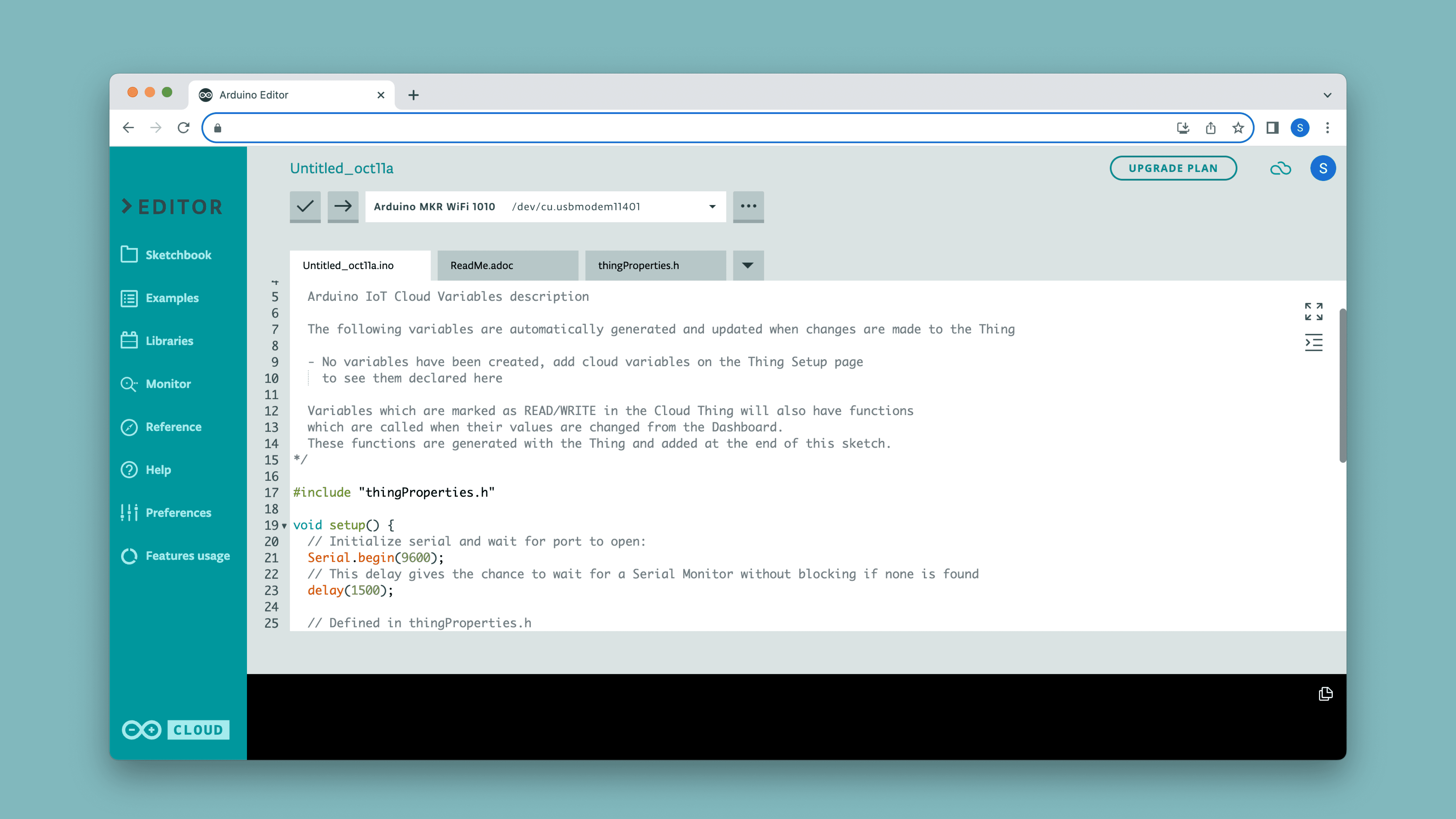 Variables we create will be used in the sketch, and will keep synchronizing as long as the board is connected to the Cloud.