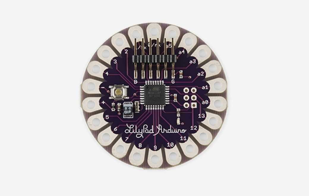 The LilyPad Arduino Main Board is based on the ATmega168V (the low-power version of the ATmega168) or the ATmega328V. The LilyPad Arduino was designed and developed by Leah Buechley and SparkFun Electronics.