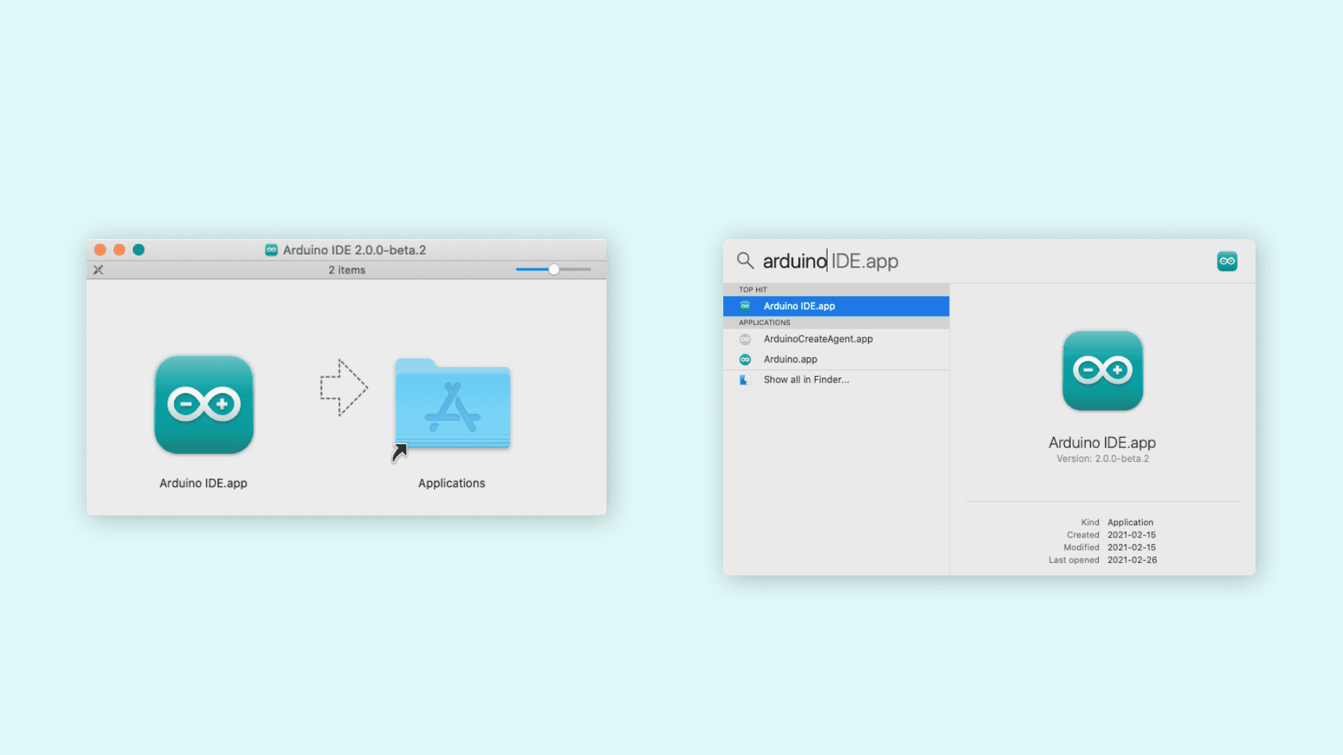 To install the Arduino IDE 2 on a macOS computer, simply copy the downloaded file into your application folder.