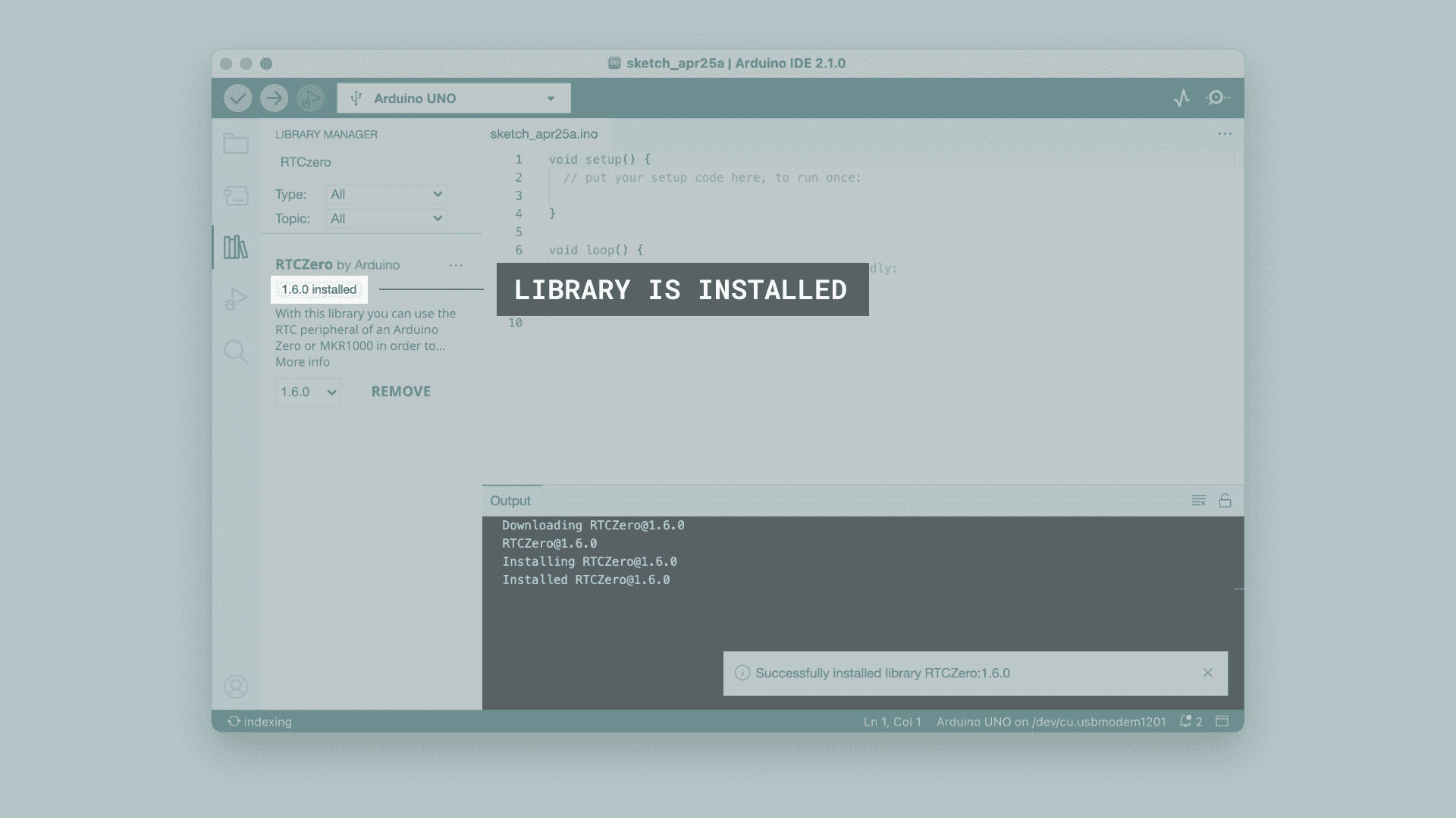 5. When it is finished, we can take a look at the library in the library manager column, where it should say "INSTALLED".