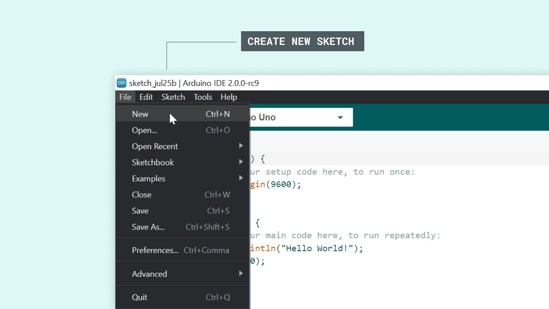 5void loop() {6Serial.println("Hello world!");7delay(1000); 8}