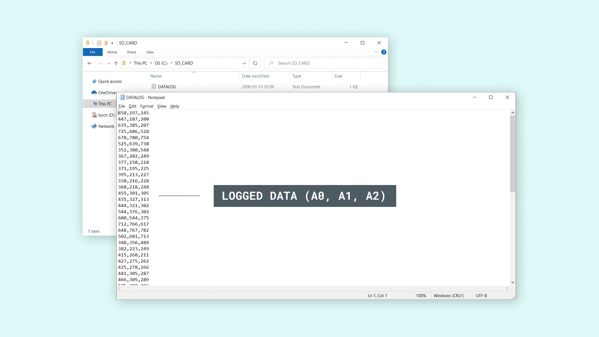Now if we are seeing these values, and no error messages, we can assume the data logging on the SD card has gone well. To check this, let's follow a few simple steps: