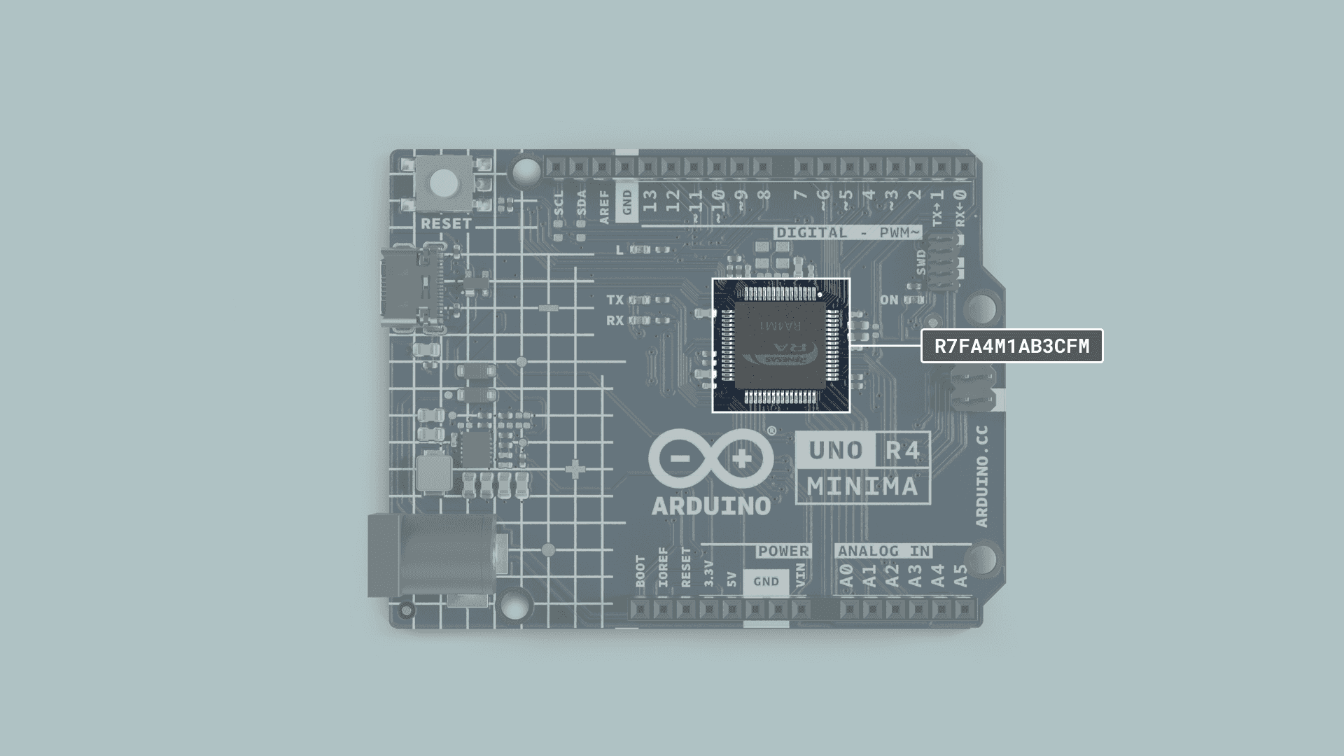 The UNO R4 Minima features the powerful and very robust Renesas microcontroller also found on the UNO R4 WiFi. Renesas microcontrollers are known for their high performance and robustness, including their built-in peripheral set.