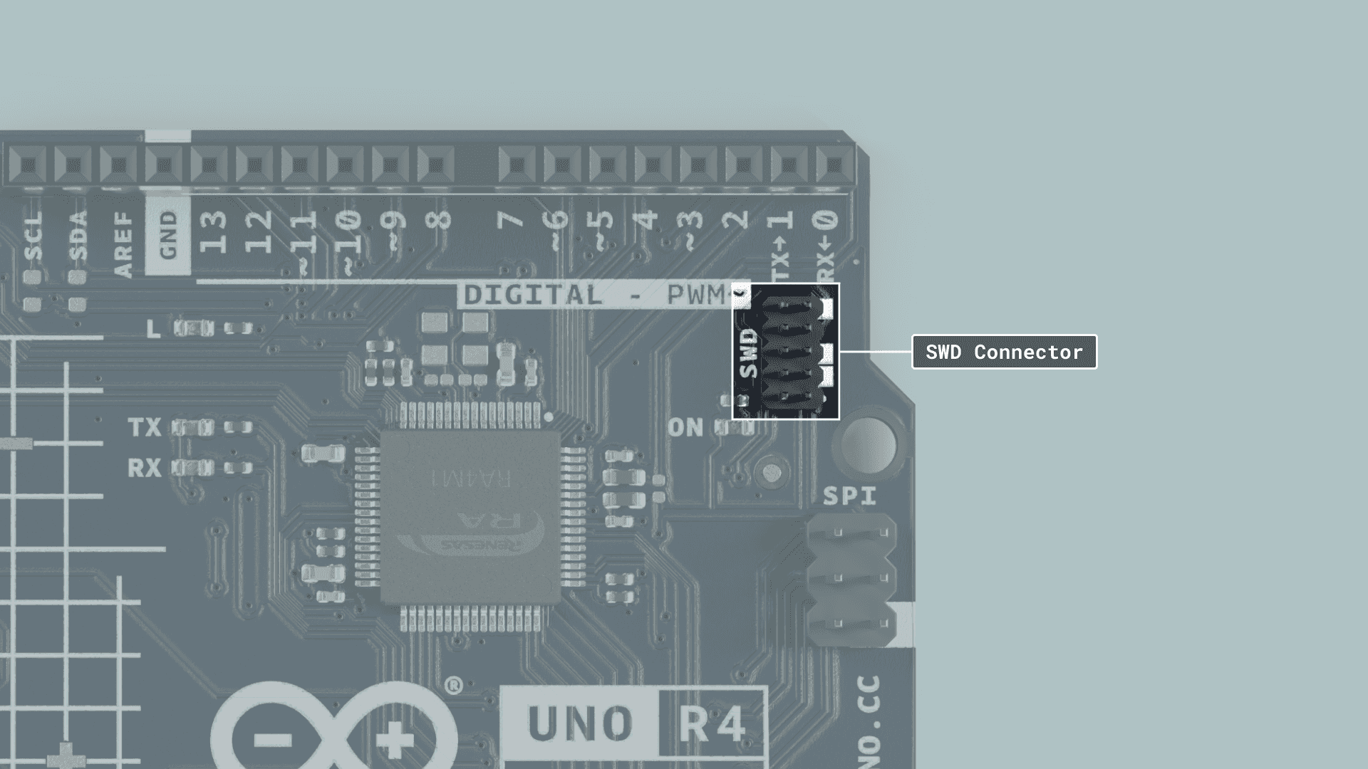 On the UNO R4 Minima, there is a debugging option available using the SWD connector pins, giving advanced debug functionalities for more advanced users.