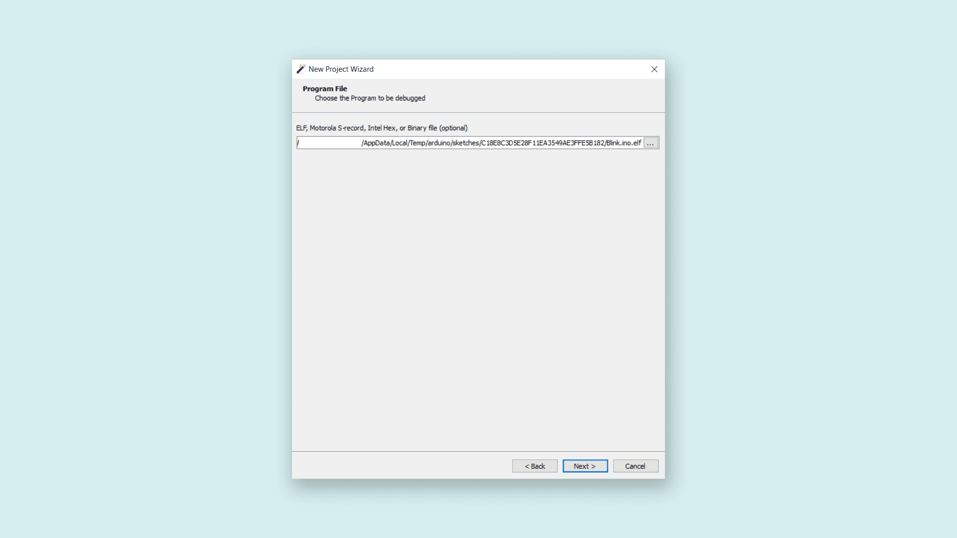 Now you get to the window that asks you to select the program to be debugged, this is where you load the project's