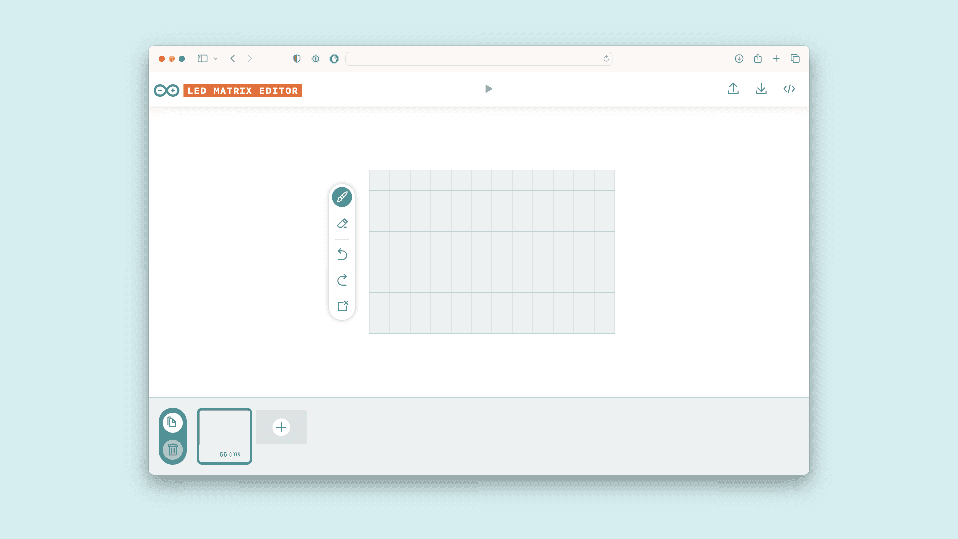 We have developed a tool that is used to generate frames and animations to be rendered on the LED Matrix in your browser. This tool is part of Arduino labs, and is therefore considered experimental software.